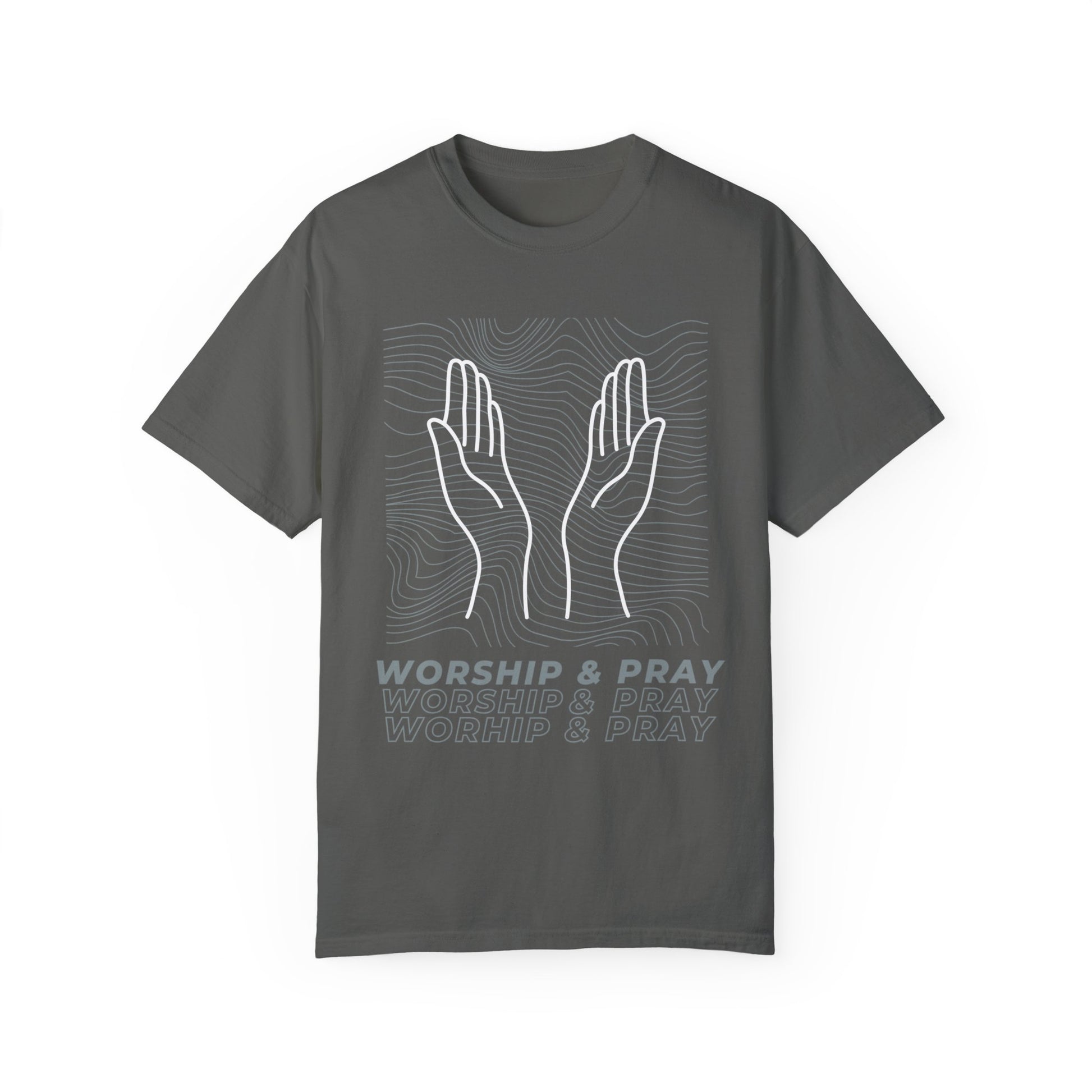 Introducing our "Worship and Pray" Tee! Available in a range of sizes and colors to suit your personal taste, our "Worship and Pray" tee is not just a piece of clothing, but a symbol of faith and devotion. Add it to your collection today and let your apparel reflect your values and beliefs.